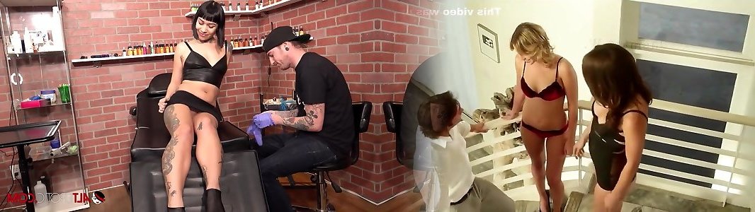 Selena Savage gets a labia tat then deepthroats 2 cocks