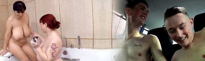 Cuties with big natural boobs having fun in the big bathtub