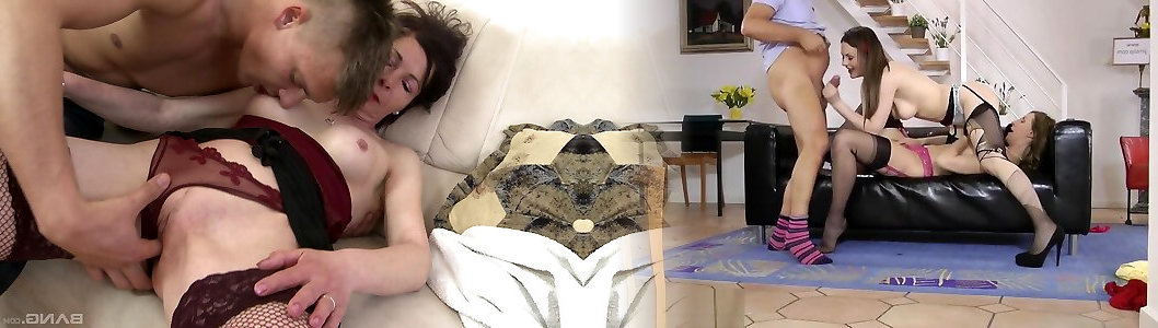 Mature lesbian in stockings entices a teen