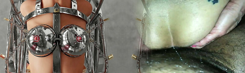 Slave in Hardcore Metal Restrain Bondage Restrained and Gagged