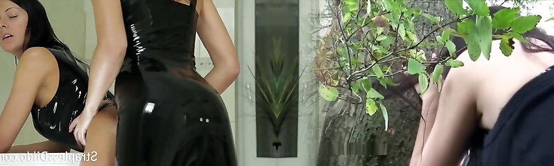 Latex clad lesbo strapon romps and fingers fetish hoes pussy