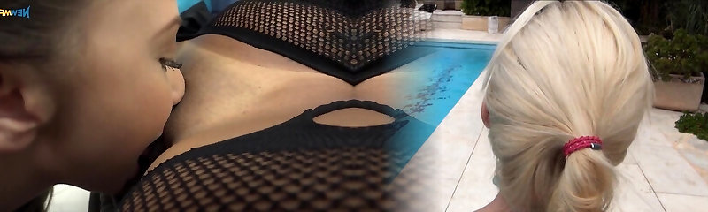 Blonde hottie taking care of a hot brunette assistant