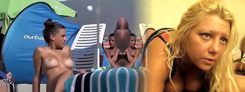 Busty teen braless in the beach