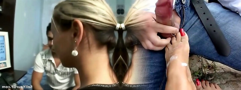 Nice platinum-blonde gives a massage to a married snatch and the have sex