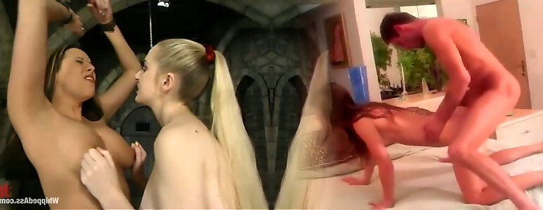 Super-cute dark haired gets whipped and then ravaged with a rope-on