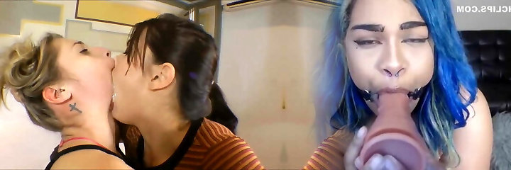 Beautiful Lena and Cindy grope, rubdown and slurp