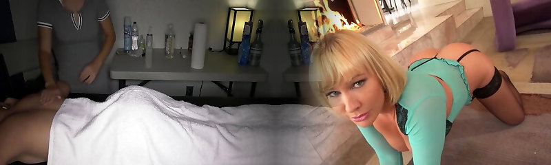 Nice platinum-blonde gives a massage to a married snatch and the have sex