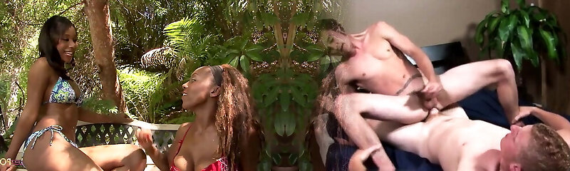 Lesbian best friends lend each other a helping hand when their dark-hued bodies get too aroused