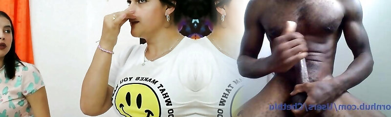 Provocative cougar and her sexy pupil engage in a cable-on session