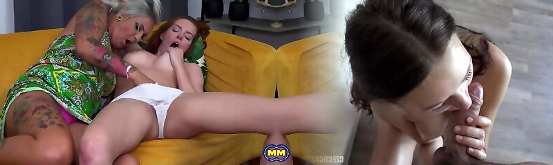 horny old mature milf and young innocent teen have sapphic sex