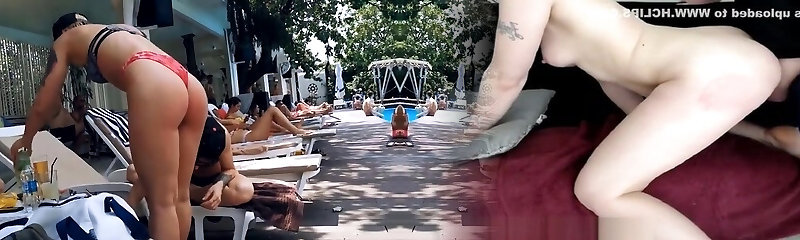 Nasty sweet babe in the pool and lezzies in sea on Tenerife
