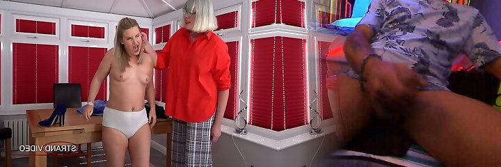 Mature milf Marina getting off by smacking dirty young blonde babe with paddle