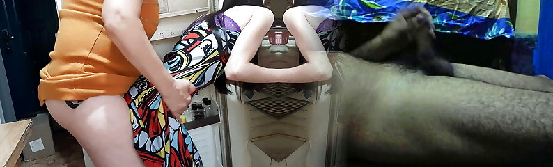I get smashed by my step-mother while I'm cleaning the kitchen - Lesbian-illusion