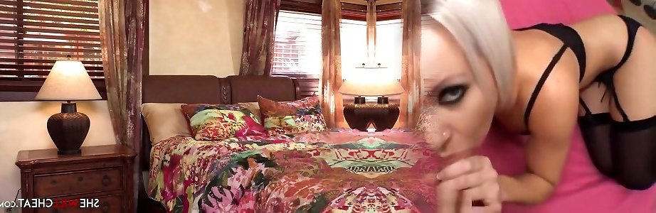 Super-steamy towheaded 13kg shackle Jolie whacks her facehole with a phat black spear