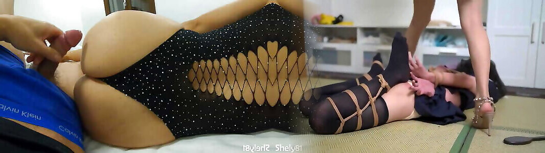 My hot stepmom in tights and white socks masturbates me until I cum on my belly