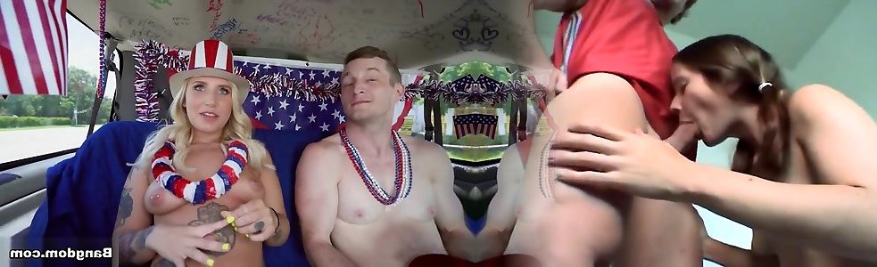 Brick Danger & Stella Raee in 4th of July Celebration on The Bus - BangBus