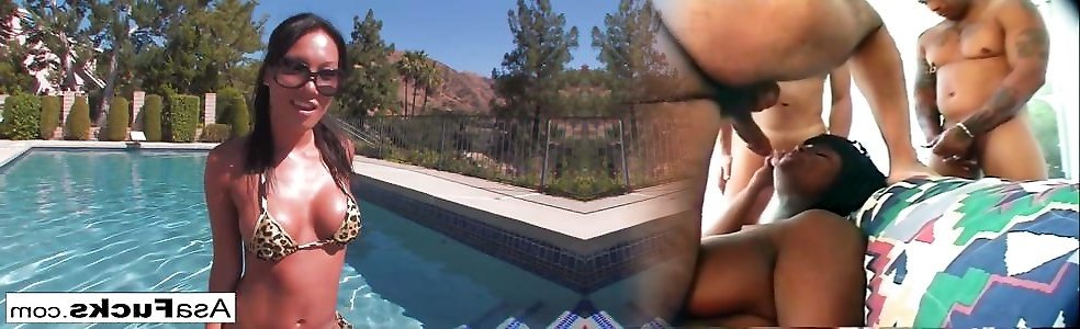 Asa amazing xxx shooter lays out by her pool and gets greased up