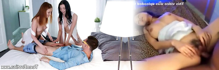 Blondie stunner and brunette sweetheart fellate boy&039;s man sausage together