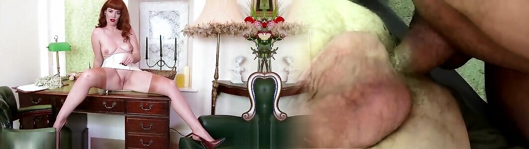 Ginger-haired stunner de-robe taunts showcasing off nyloned gams bare cooter