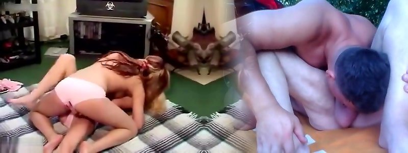 Hot teen Sapphists lick their wet cunts on the couch