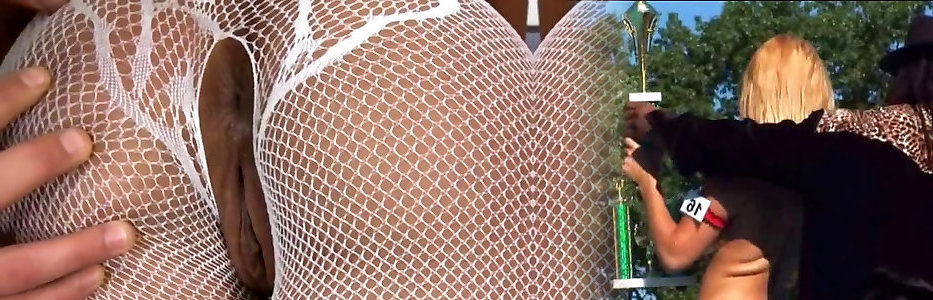 European stunner in fishnets takes two giant beefsticks in 3 way