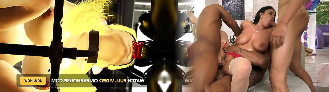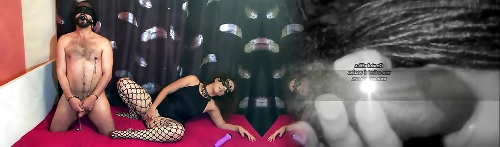 Female Dom in a Latex Gimp Outfit assfuck riding a big pipe of a handcuffed masculine