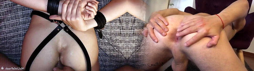 Cuffed and gagged analsex with petite girl while her peehole is plugged