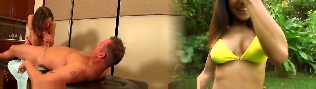 Buxom swimsuit masseur jacking customer