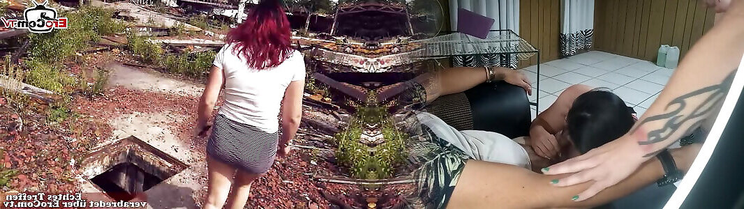Thin crimson haired German lady during a pov Tear Up appointment in public