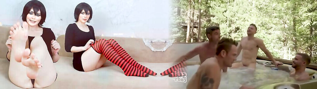 Sweet vampire Mavis sex video very young teases you with her oiled feet and asks you to cum on her feet on Halloween