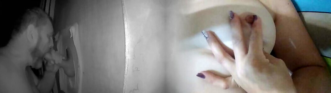 Gloryhole whore stroking a strangers prick