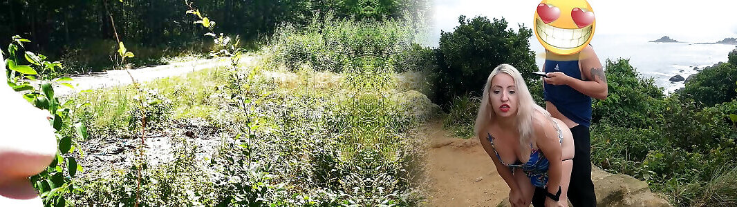 Titslapping in nature while cars drive past