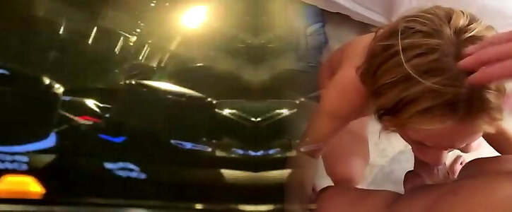 risky blowjob in the car while driving
