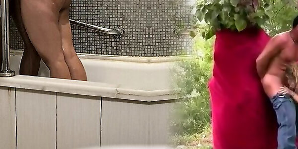 Dialogue with brunette, magnificent booty, big black cock Hard-core, Ejaculation with Son