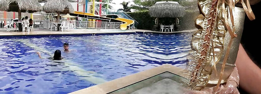 Draining in lesbian luci li hotel garden