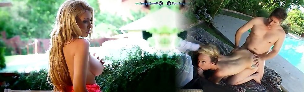 Platinum-blonde monstrous bra-stuffers honey Donna Bell getting off in the garden