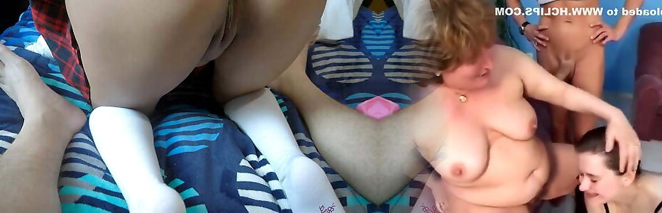 Threesome. Sexy milf Platinum, cute brunette naked Assol and old neighbor adult man in one bedroom. Naked Nudists
