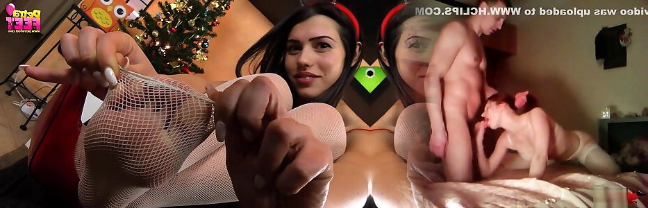 Unexperienced Teenage feetjob - Fishnet soles