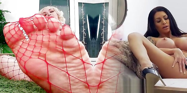 Foot Fetish Video: fishnet pantyhose Arya Grander hot sexy blonde MILF FemDom POV