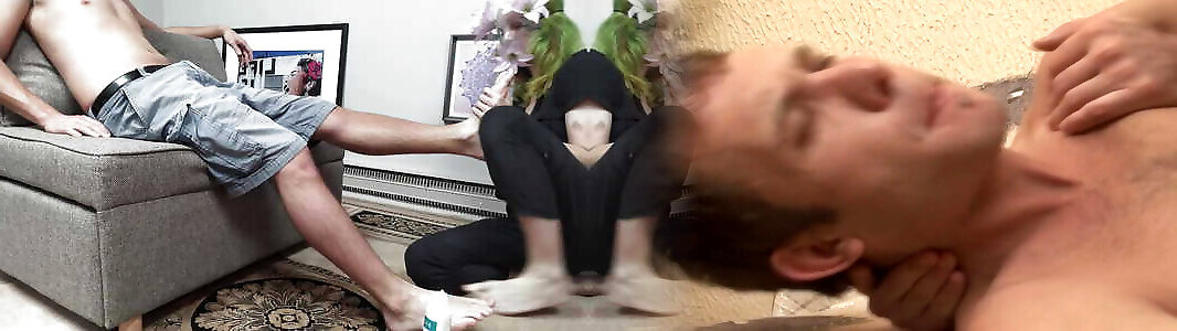 Slave for feet. Feet fetish. Slave kisses legs and feet, sucks toes of Dominatrix Nika.