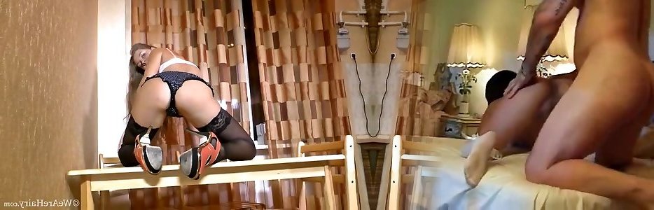 Paola 1st time woman cucklod in rosy undergarments and stockings humped by a white beefstick