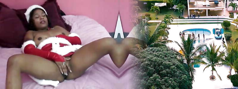 Sexy Mrs. Claus fingers her pussy in bed