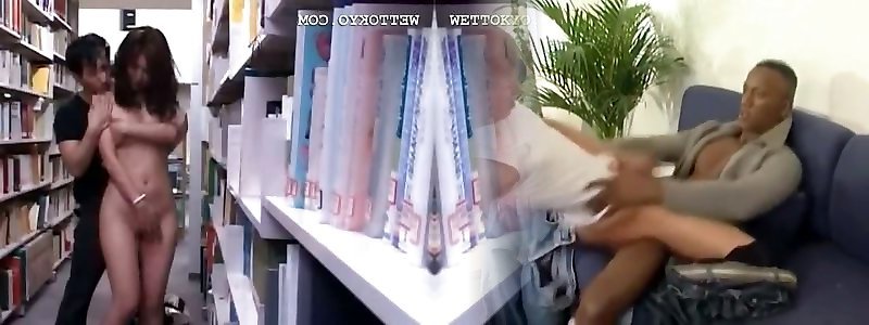 Asian bare charmer licked and poked rock-hard in library