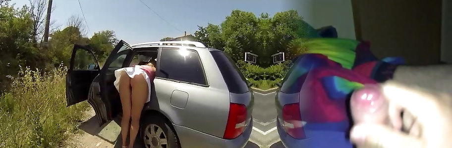 Showing no panties with a fake penis on a rest area