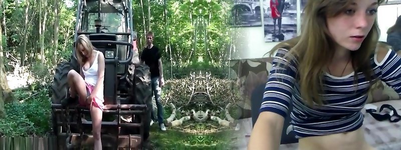 Cute teenie hitchhiker romps in woods