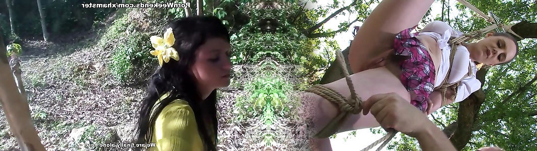 Nataly trussed in the forest at night and pounded