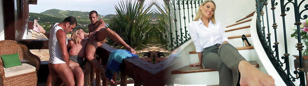 Blonde milf with horny big tits penetrated by two cocks