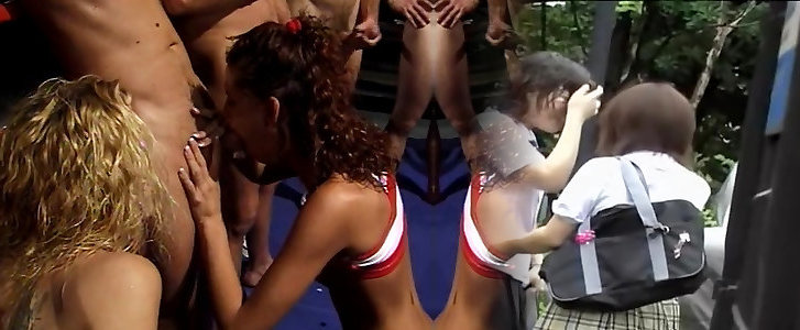 Alexandra in gang blowbang facial cumshot cum shot on Jism For Coat