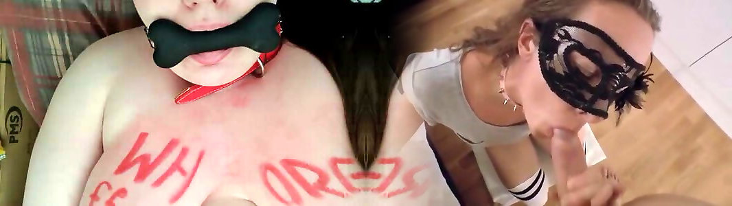 Halloween Scary Cumming and Pissing to Slave Slut Mouth Through a Funnel Gag
