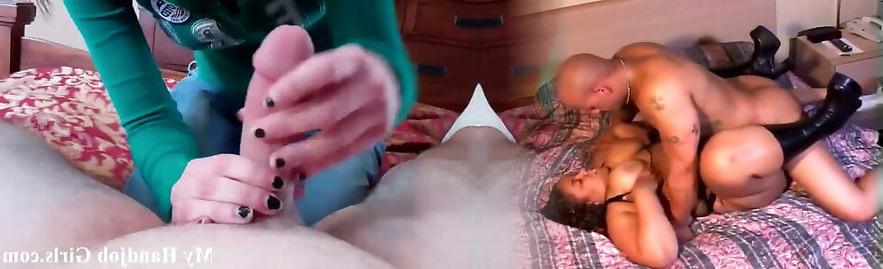 Rigid working Dark-hued gal providing milky guy a hand job